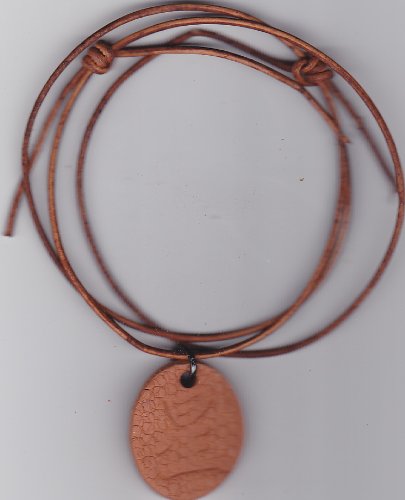 Handmade, with love, out of terra cotta clay. Each pendant is hand punched, pressed, cleaned and then put in the kiln. Once done, I then create the necklace. No machines touch these pendants, other than the kiln. One size fits all. The cord is made with leather from India 1.5 MM thick. It contains two knots that allow you to adjust the cord to the length you prefer. Each pendant is 1" X 1 1/4". The necklace is 18" long without the pendant. Each one is light but hard as rock. Very strong and should not break. Every pendant is unique, due to the handmade process.