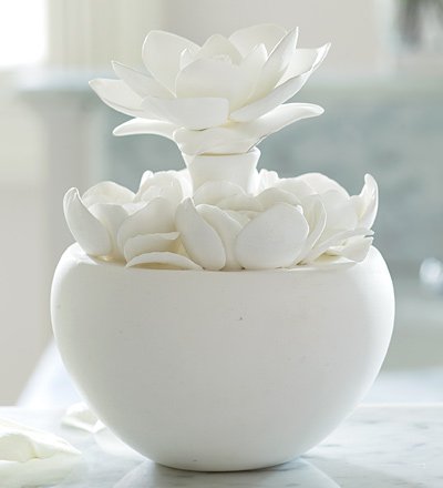 A sweet magnolia nestles into a ring of roses, serving as a decorative lid for our Floral Medley Porcelain Essential Oil Diffuser. Fill the container with fragrant oil and the thirsty bisque flower pulls the oil into its porous petals, and slowly fills the room with scent. Porcelain bisque. Oil not included. Read more...